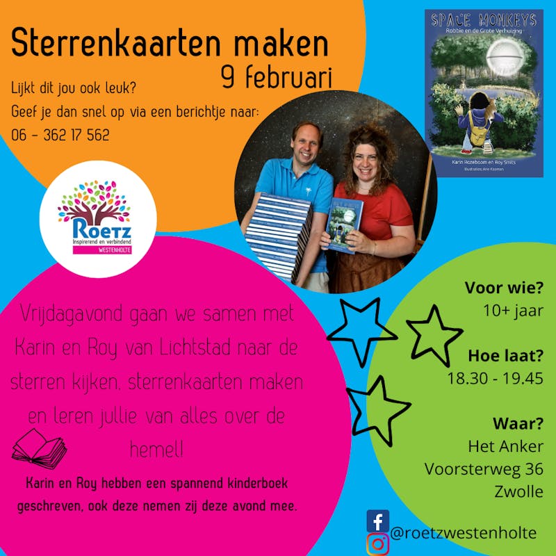Karin en Roy komen ons vertellen over de sterren en gaan ons helpen bij het maken van een prachtige sterrenkaart.