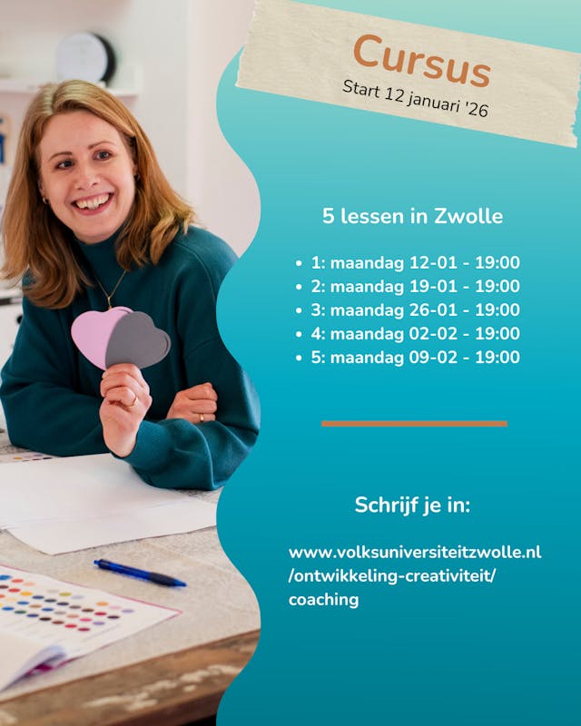 Wil je in het nieuwe jaar met meer vertrouwen, rust en plezier in het leven staan? Of ben je toe aan een nieuwe fase of stap en wil je jouw potentieel tot bloei laten komen? Vanaf maandag 12 januari 2026 kun je meedoen aan de cursus; Ontwikkel jezelf met de Persoonlijke Kracht methodiek, gegeven door vrouwencoach Eline Bijzet (Kleurfactor) via de Volksuniversiteit Zwolle. In vijf inspirerende lessen leer je jezelf beter kennen met behulp van de kleurenpsychologie, creatieve werkvormen en persoonlijke begeleiding.
