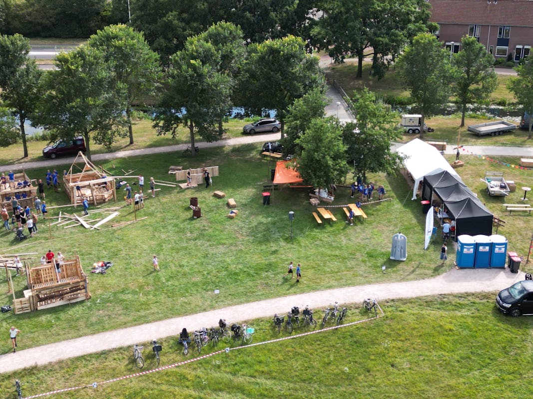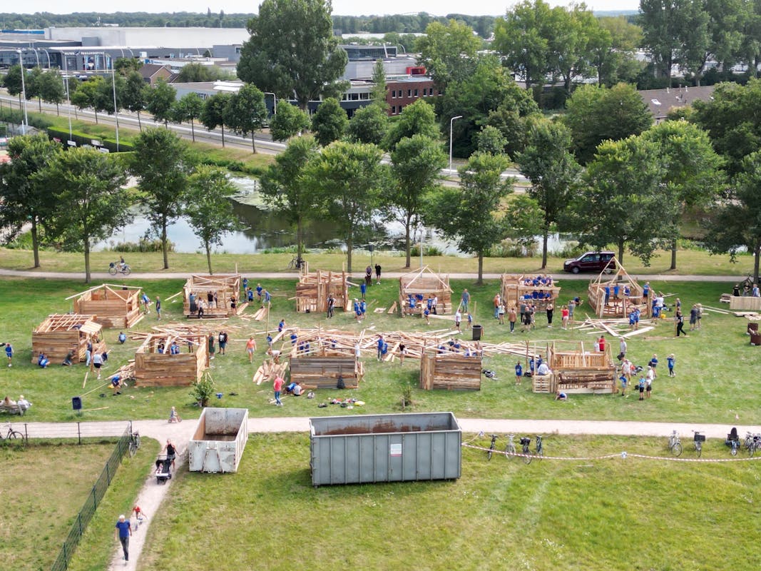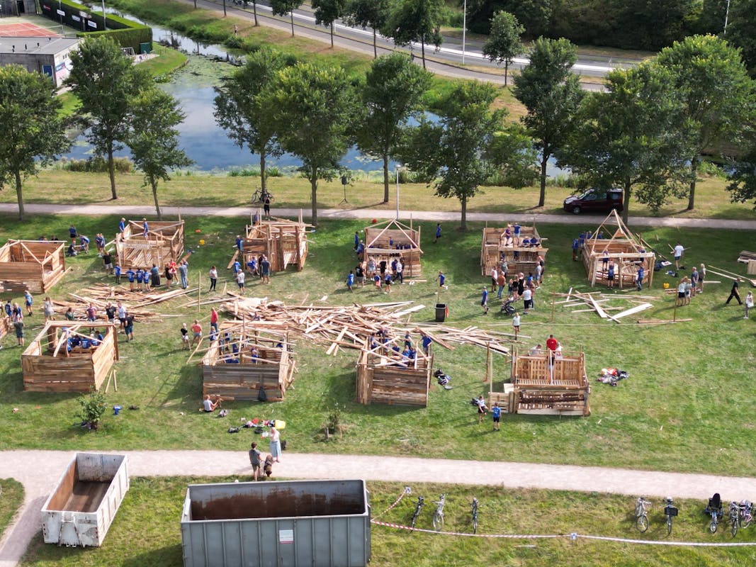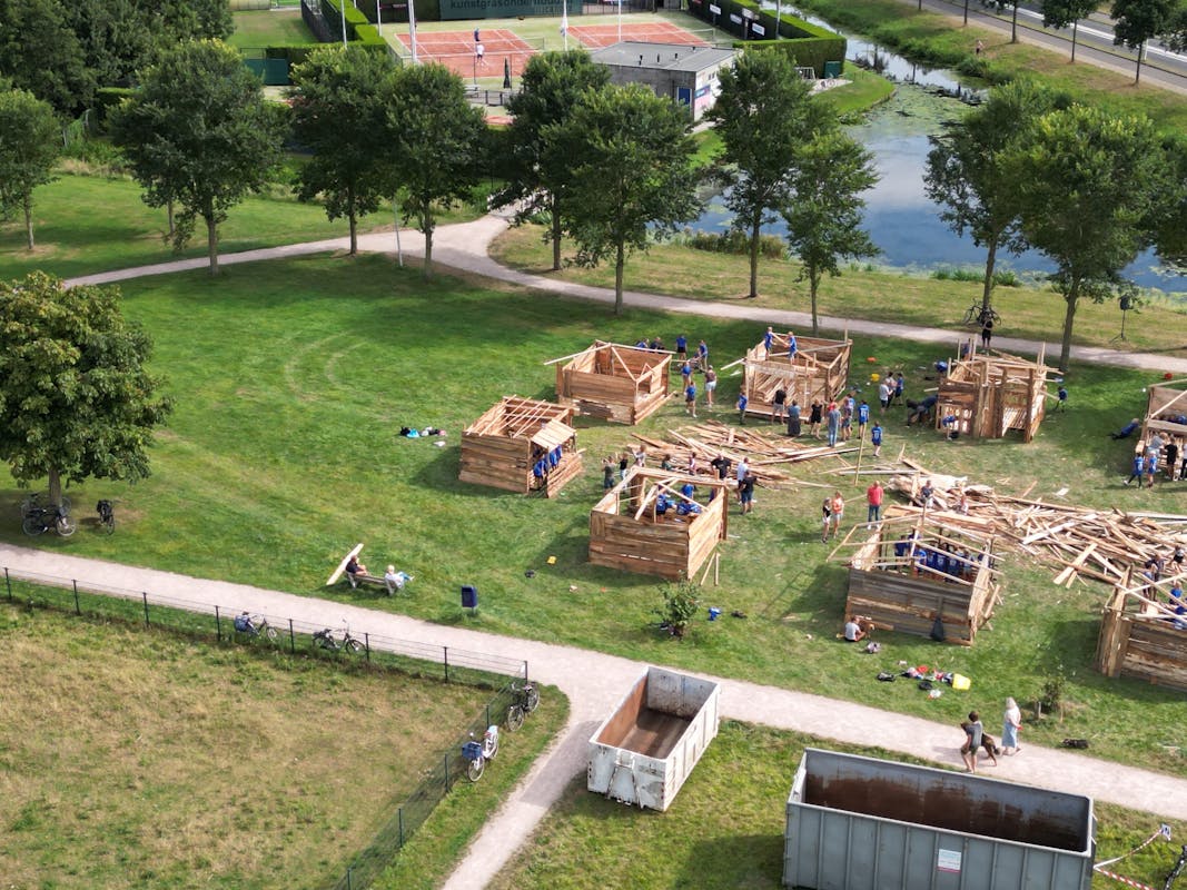 Er is weer hard gewerkt om de Tiny (kleine) huisjes in het huttendorp zijn vorm te geven. In kleine groepen werden met hamers, spijkers en zagen de onderkomens in elkaar gezet. Regelmatig werden versnaperingen uitgedeeld om de arbeiders van de nodige energie te voorzien.