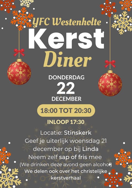 YFC Westenholte Kerstdiner voor jongeren (10-21 jaar)!
