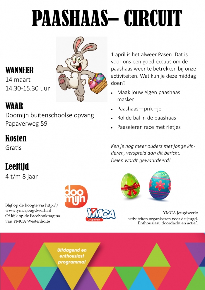 Deze keer een paashaas circuit voor de leeftijd 4 tot en met 8 jaar.