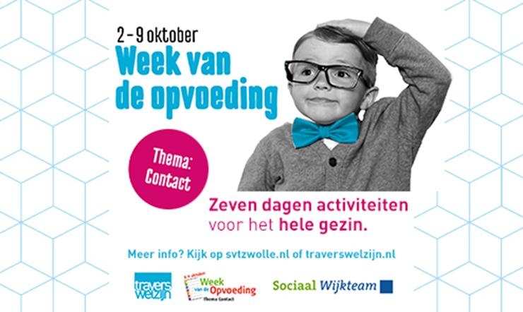 Een groot deel van het programma in de Week van de Opvoeding (2 t/m 9 oktober) in Zwolle is bekend. Waar zien we jou? Bij de lezing over het puberbrein? Of doe je mee met bootcamp? Zing je liever mee met andere (groot)ouders en kinderen? Kijk wat er te doen is in het blokkenschema en maak je keuze op www.swtzwolle.nl/weekvandeopvoeding.