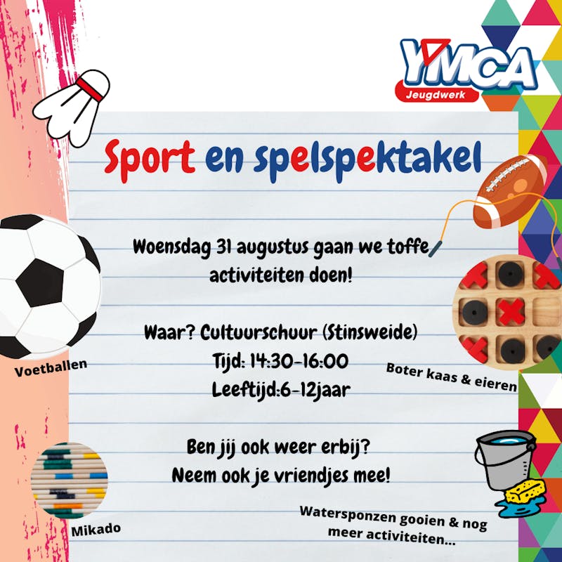 Het is alweer zover volgende week woensdag 31 augustus gaan we toffe sport en spel activiteiten doen!😊